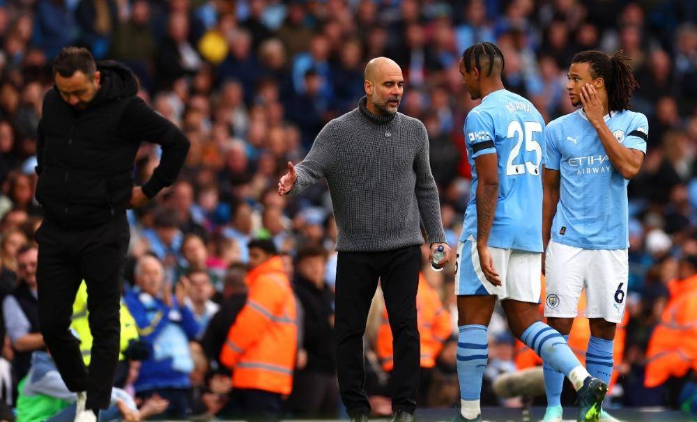 阿坎吉对着教练席大喊“没事”,瓜迪奥拉却扯着嗓子回应“不能冒险”。